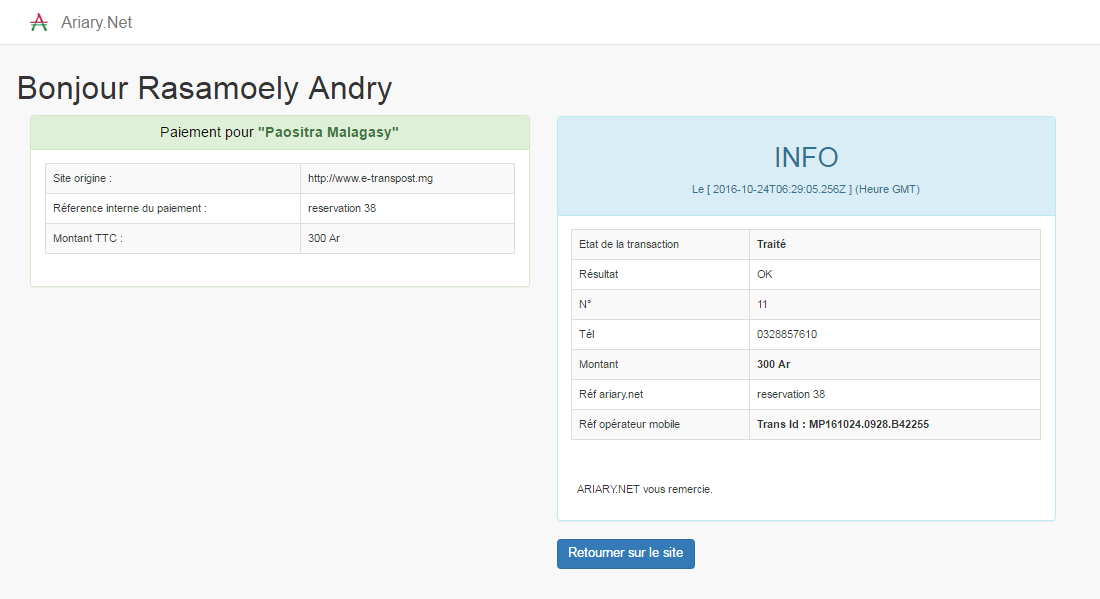 Retournez sur la page de gestion de votre compte pour voir votre transaction.