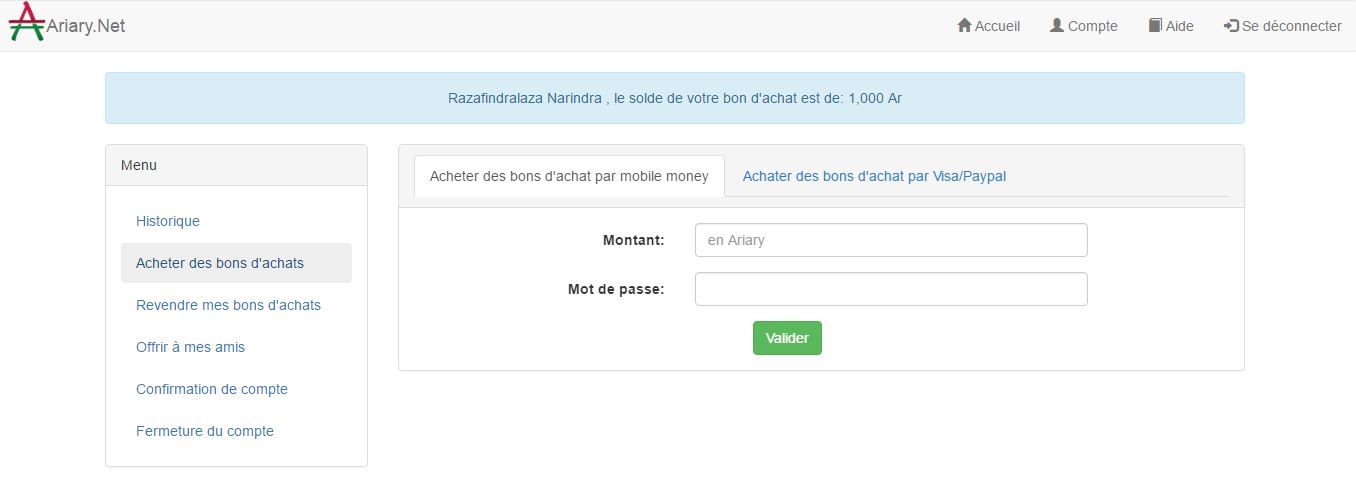 Cliquez sur 'Acheter des bons d'achat' et précisez le montant du bon d'achat que vous voulez